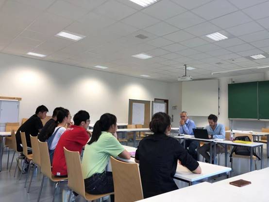 2019年7月26日,是欧冠官方网站入口-德国慕尼黑应用技术大学工业4.0交换项目最后一个课程日,也是考试日,同学们都已在前一晚,将学习记录上传学校教务网站,并在这一天早早起床,复习课程所学知识,以应对考试。从早上9点开始,考试以学生与Renner和Gabrysch两位教授的全英语问答形式进行,同学们5-6人一组,每组约30-40分钟时间,讨论紧张而激烈。