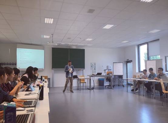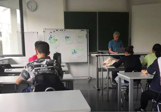 课程学习是我们此次暑期交换项目的核心。在第一周的课程学习中,文化交流和创新思维一直是课堂的重点。相比于中国的课堂教学,德国的课堂教学会更加强调师生互动的重要性,每当教授将讲授完一个知识点,便会给各个小组布置一个任务,并以此来了解同学们对知识的掌握和理解情况。