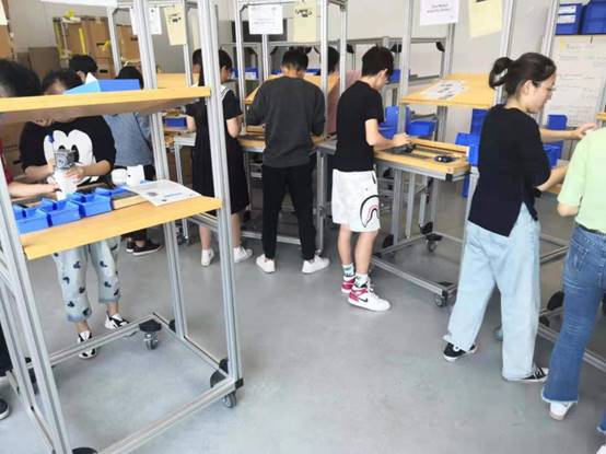 Prof. Spitznagel 和Prof. Rieger两位教授的实验课:数字工厂设计与工厂模拟练习和振奋人心的工厂练习的实操环节更是手把手传授了工件的制作组装方法,并一一强调了各个环节的注意事项。在教授的陪同帮助下,同学们完整体验了工厂“流水线”的全部流程,并成功制作出了正常工作的作品。虽然第一次合作制作就顺利完成,但我们制作的时间远远超出了规定的时间。