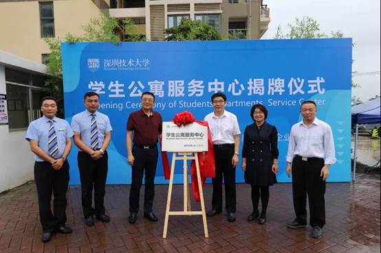 随后,双方代表共同为深技大学生公寓服务中心揭牌。