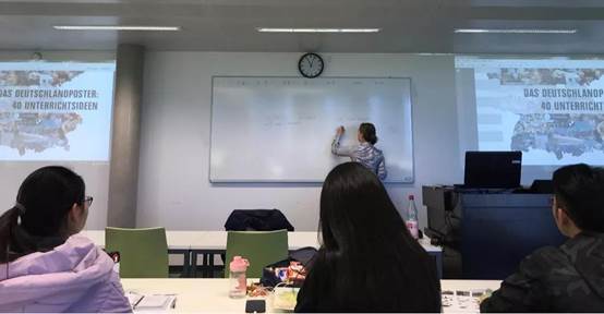 FHWS的德语老师追求将德语与生活结合在一起,并以德国的地图及各个城市的独特产品作为课程切入点,其中也包含了在深技大学习德语时接触到的关于方位辨识的知识。这种轻松的上课方式,使得大家少了压迫感,同学们也更容易记住知识。此外,通过介绍德国的人文以及各种特色产品在德国的分布,大家更加全面地了解德国。值得一提的是,课程有大部分的时间通过观看关于德国文化和特色的视频,然后做关于视频的练习。