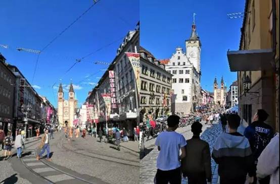 同时,维尔兹堡是德国浪漫之路的的开端之城,浪漫之路北起维尔兹堡,一路向南穿越河谷,农田,森林,草地以及山峦,途径中世纪小镇罗滕堡、丁克尔斯比尔以及著名城市慕尼黑,落脚在阿尔卑斯小镇菲森,全程366公里。参加FHWS夏季实训的深技大学子所居住的旅社便位于浪漫之路起始,贯穿维尔兹堡的美因河旁。在不远处,便是横跨美因河的老美因桥,每当到了下午五六点,桥上总是站在许多年龄各不相同的当地居民,人手一杯白葡萄酒,赏着河边美景,迎着拂面微风,与身边的人畅谈生活,这是多么美妙和谐的一幅画卷。