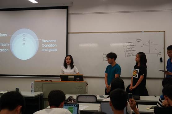 讲堂上,通过让同学们分享各自在学校或公司当中的项目领导经历,Pieter教授简要介绍了项目管理的基本流程和方法,协助学生发掘项目推进过程中所需具备的不同领导能力。此外,学生通过分析Andrea Jung(雅芳公司总裁和首席营运长官)和Indra Nooyi(百事公司前首席执行官)两位女性的领导行为和特征,进一步深刻理解变革型领导的真正内涵。