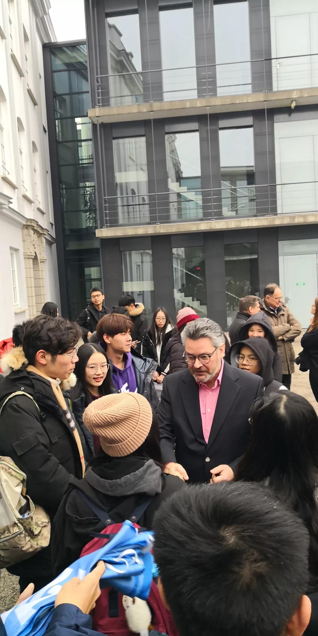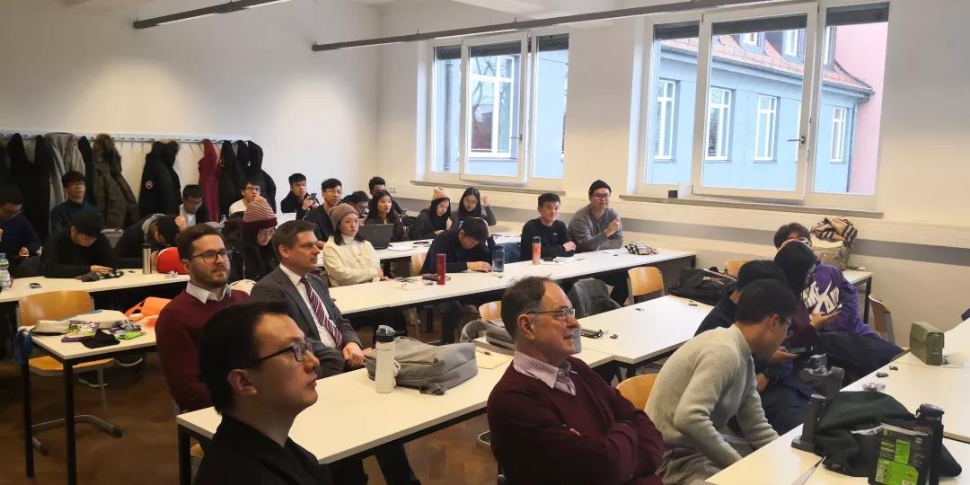 Presentation结束后,奥格斯堡应用技术大学副校长,曼弗雷德·乌尔教授(Prof. Manfred Uhl)应邀接见了来自欧冠官方网站入口的同学们。乌尔教授非常欢迎深技大冬令营团的来访,希望同学们回到中国后能够学以致用,不负时光。他还愉快的回忆起上次访问深技大时的情景,他对深技大建设发展的速度赞不绝口,并祝愿两校的合作关系能够乘势而上,更多元更深入。