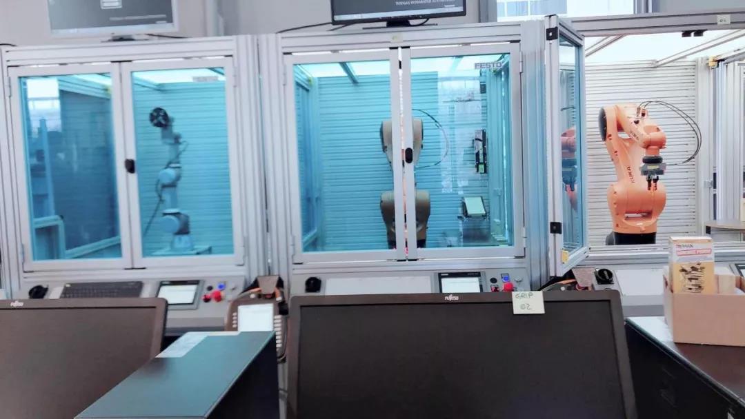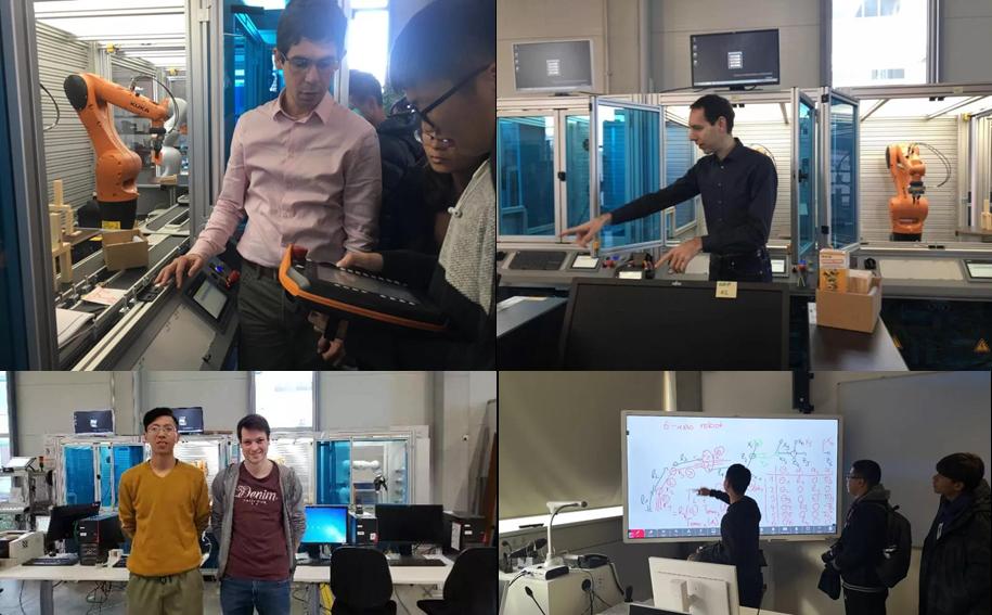 在周末的短暂休息后,同学们迎来了第二周紧张而丰富的学习和参访活动。周一至周二,同学们来到了奥格斯堡西北的讷德林根(Nördlingen)科技中心,参加“工业4.0”技术实践课程。佛罗莱恩·科贝尔教授 (Prof. Florian Kerber) 和 本杰明·丹策尔教授(Prof. Benjamin Danzer)详细的为同学们讲解了工业机器人的设计和操控原理,操作规范等知识,并带领同学们实地操作了工业机器人。