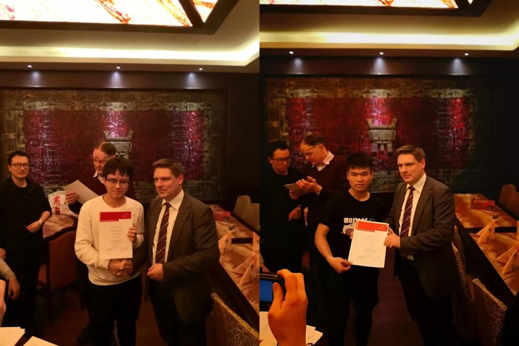 周五晚上,Franz教授特地在当地最好的中餐馆百味园安排了一场告别晚宴。深技大的同学们与奥格斯堡应用技术大学师生欢聚一堂,同学们也享受到了久违的中餐。随后,沃尔夫冈·泽勒院长(Prof. Wolfgang Zeller)为参与此次冬令营项目的同学颁发了结课证书并合影留念。