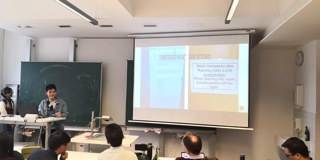 行程的最后一天,同学们在Franz教授和带队老师的安排下,同学们分为四个小组,其中两组同学以如何看待德国“工业4.0”和中国的产业升级战略为主题,两组同学以为主题进行了Presentation,其他两组同学则选择以中德社会文化差异为主题。同学们通过分析总结这两周来实地调研的体验,结合学术资料详细而又幽默的讲述了中国应该如何进行产业升级,以及中德在交通、饮食、文化等方面的异同。