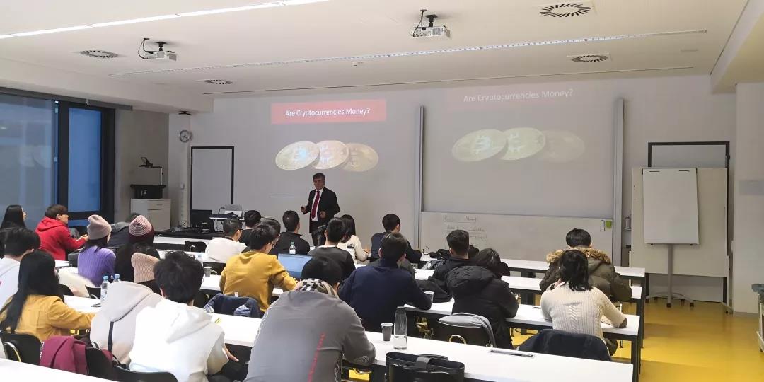 随后在货币是什么的金融通识课上,商学院院长迈克尔·福伊希特教授(Prof. Michael Feucht)向同学们介绍了货币的理念。讲座深入浅出,从货币的起源和发展,到现代国际货币体系的理念,通货膨胀,以及虚拟货币的出现和前景等都有涵盖。