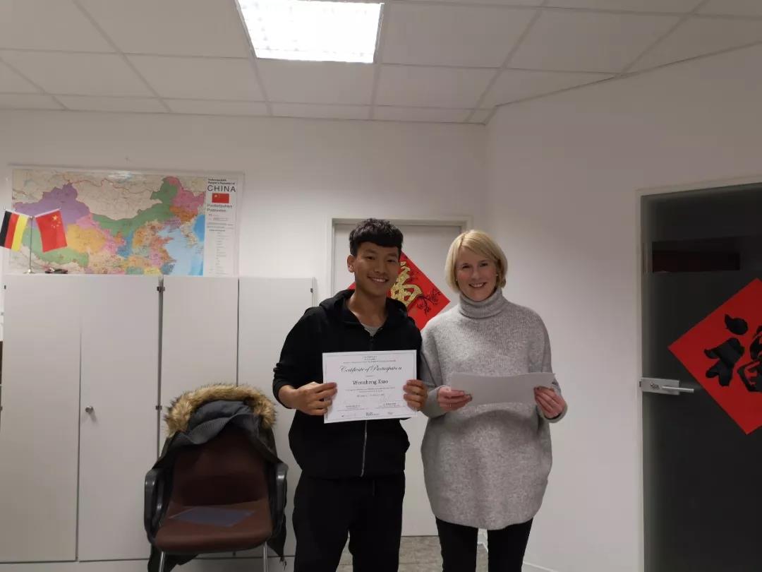 31日晚上,中德橡树园特意为同学们准备了一场Farewell Party为此次冬令营划上圆满的句号!活动特意邀请到特里尔应用科技大学Nina Runge老师为学们颁发了冬令营结业证书!