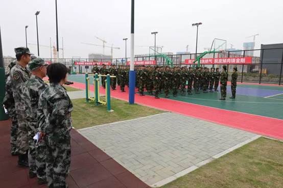 本次军训,除了队列方阵之外,还有特色方队。徐刚副主任一行依次观看了匕首操表演方阵、擒敌拳表演方阵、反恐特战方阵、队列方阵、国旗护卫队等。