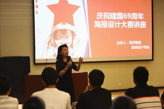 为了让同学们更好地理解活动举办的意义。活动特别邀请到了我校创意设计学院阎评教授分别于6月29日及9月20日为同学们做了“庆祝建党97周年海报设计大赛”及“庆祝建国69周年海报设计大赛”两场讲座。