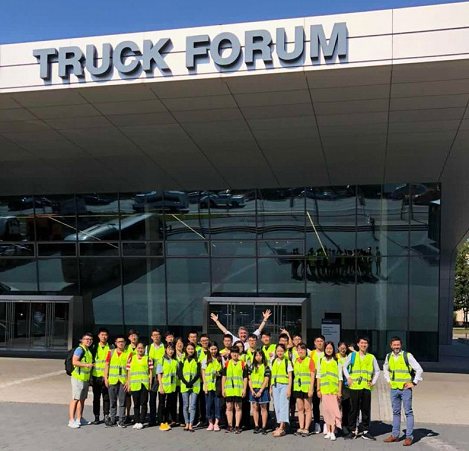 实地参观汽车制造流程后在曼恩商用车公司前合影