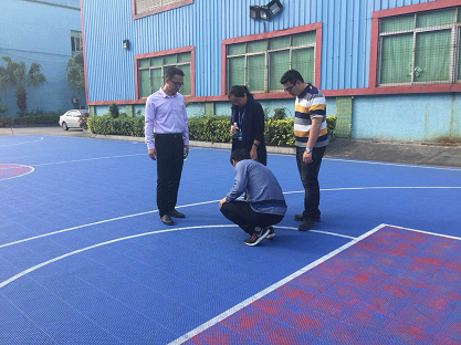 欧冠官方网站入口(筹)篮球场目前是全校师生进行体育活动和比赛的主要场所,场地的安全性、舒适性十分重要。为了给全校师生提供一个更加安全、舒适的场地使用环境,2018年2月28日下午,欧冠官方网站入口(筹)张岩鸿副主任带领体育部老师前往深圳沙井对篮球场的悬浮地板材料进行实地考察。