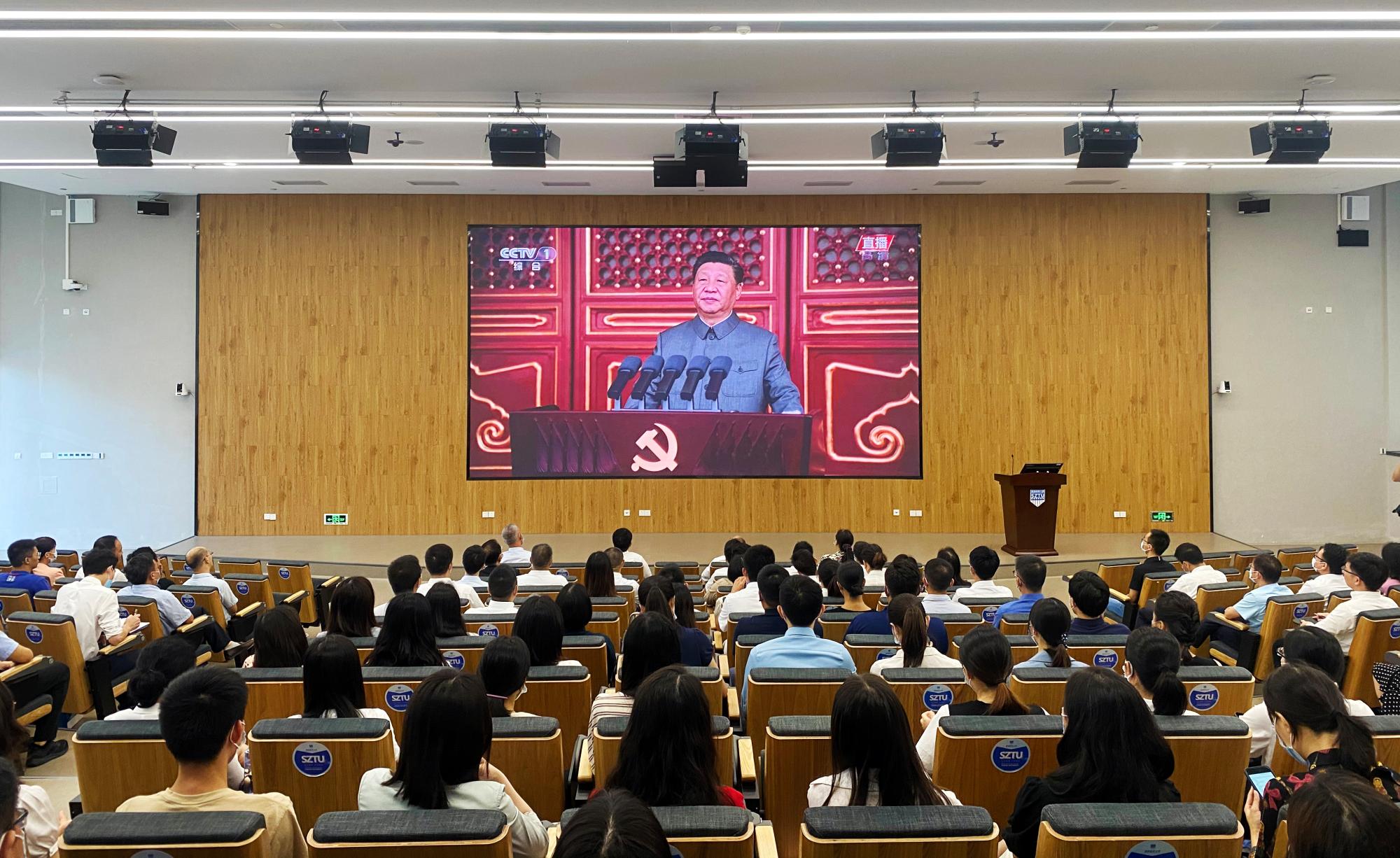 7月1日上午,庆祝中国共产党成立一百周年大会在北京天安门广场隆重举行。中共中央总书记、国家主席、中央军委主席习近平发表重要讲话。今天,欧冠官方网站入口党委组织全校师生共同收看大会直播,欧冠官方网站入口党委书记张基宏,校长阮双琛,党委副书记、纪委书记张岩鸿,副主任徐刚,全校各学院党总支、各直属党支部主要负责同志等300余名师生在公共教学楼主会场收看大会直播。其他师生通过电子屏幕、手机新媒体客户端等观看了直播。...