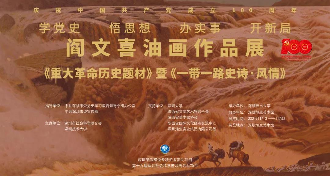 适逢党的十九届六中全会胜利闭幕之际,11月13日,“学党史、悟思想、办实事、开新局——《重大革命历史题材》暨《一带一路史诗•风情》阎文喜油画作品展”在深圳市旭生美术馆拉开帷幕。本次展览展出著名油画家阎文喜的百余幅画作,其中涵盖了《延安文艺座谈会》等优秀革命历史题材作品及以“一带一路”为题材的人物画、风景画,这些画作时间跨度长达半个多世纪,见证了不同时代的历史风貌。本次展览由深圳市委党史学习教育领...