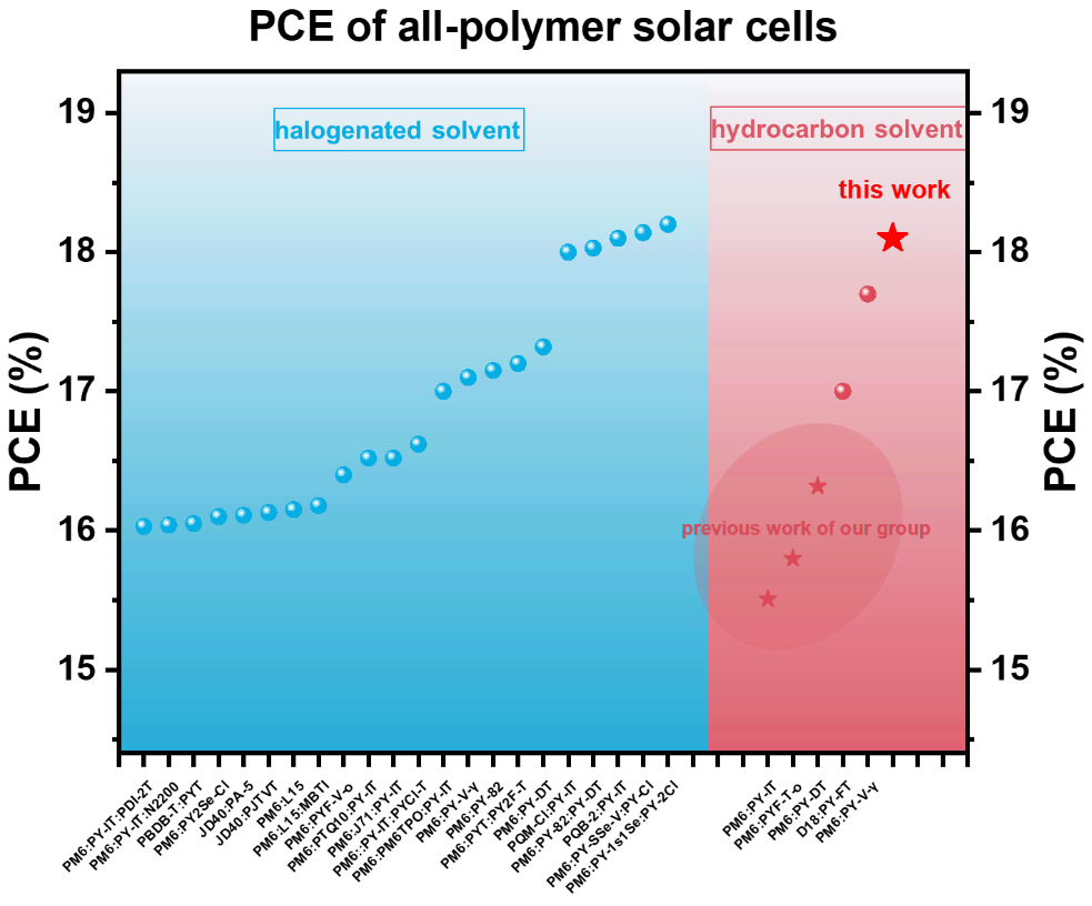 有机太阳能电池是目前能源领域的热门课题之一,由于其具备的诸多优势使其在未来能源发展中有着极大的潜力。全聚合物太阳能电池是有机太阳能电池中的一个重要分支,其活性层中的电子给体和受体材料全部都由聚合物构成,具有成膜性好、力学性质优秀、稳定性优良等优势。然而,高效率全聚合物太阳能电池普遍依赖氯仿这一溶剂进行制备,而氯仿易挥发,不适合大规模加工。此外,目前高效率全聚合物太阳能电池器件的电子迁移率普遍偏...