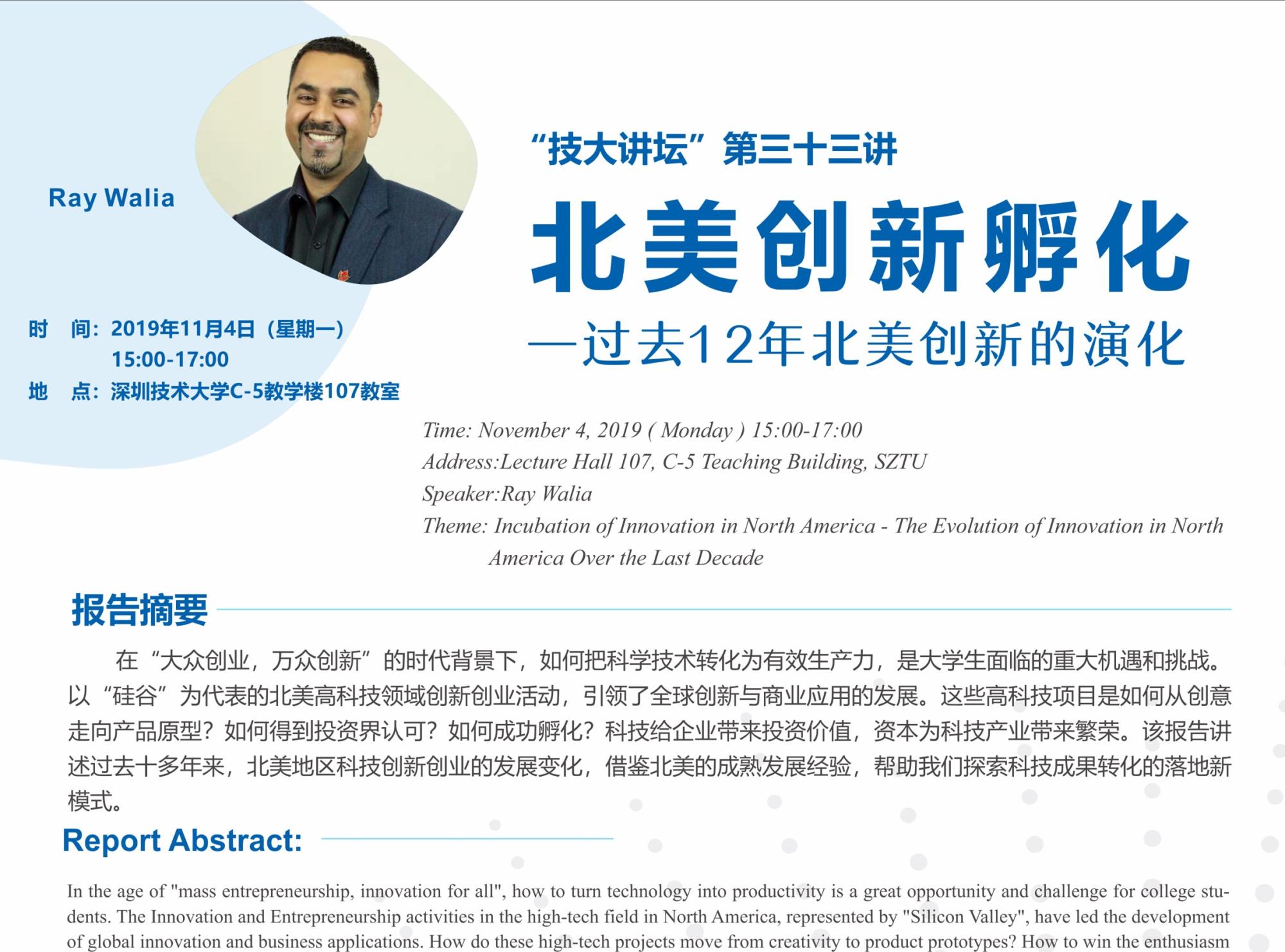 时间:2019年11月4日(星期一)14:00-16:00地点:欧冠官方网站入口C-5教学楼107教室主题:北美创新孵化—过去12年北美创新的演化报告摘要在“大众创业,万众创新”的时代背景下,如何把科学技术转化为有效生产力,是大学生面临的重大机遇和挑战。以“硅谷”为代表的北美高科技领域创新创业活动,引领了全球创新与商业应用的发展。这些高科技项目是如何从创意走向产品原型?如何得到投资界认可?如何成功孵化?科技给企业带来投资价...