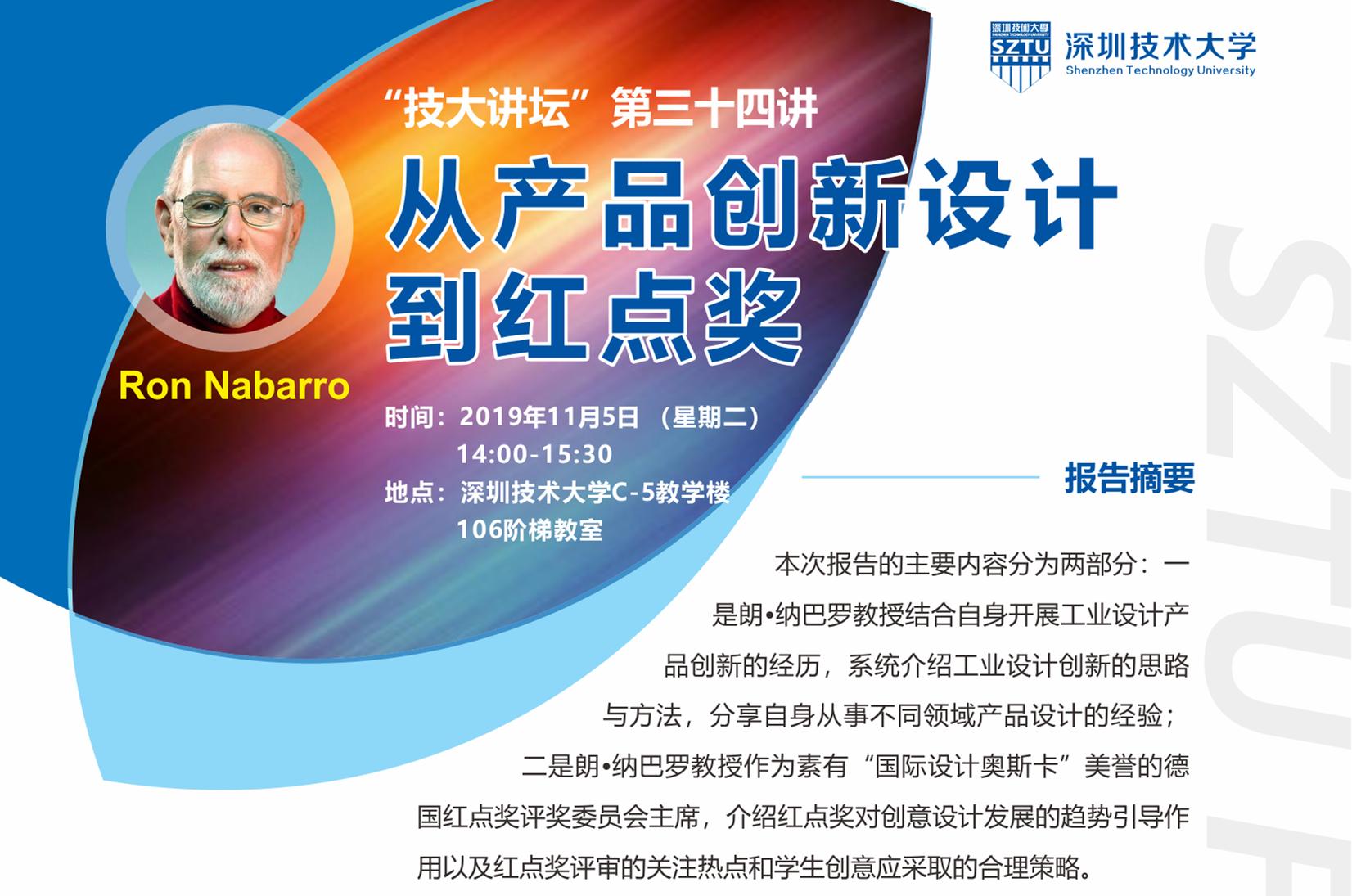 时间:2019年11月5日(星期二)14:00-15:30地点:欧冠官方网站入口C-5教学楼106阶梯教室主题:从产品创新设计到红点奖报告摘要本次报告的主要内容分为两部分:一是朗•纳巴罗教授结合自身开展工业设计产品创新的经历,系统介绍工业设计创新的思路与方法,分享自身从事不同领域产品设计的经验;二是朗•纳巴罗教授作为素有“国际设计奥斯卡”美誉的德国红点奖评奖委员会主席,介绍红点奖对创意设计发展的趋势引导作用以及红点奖评...